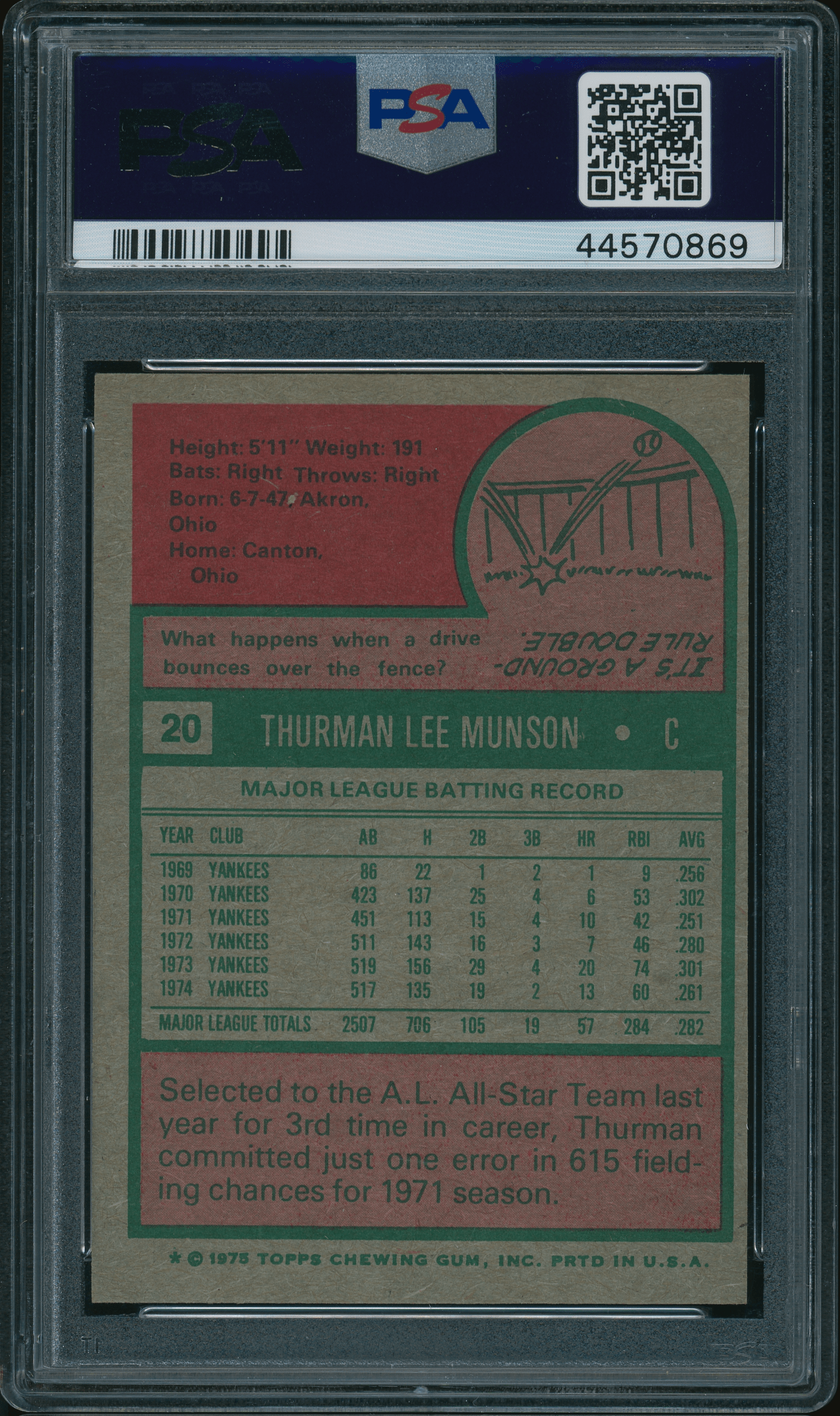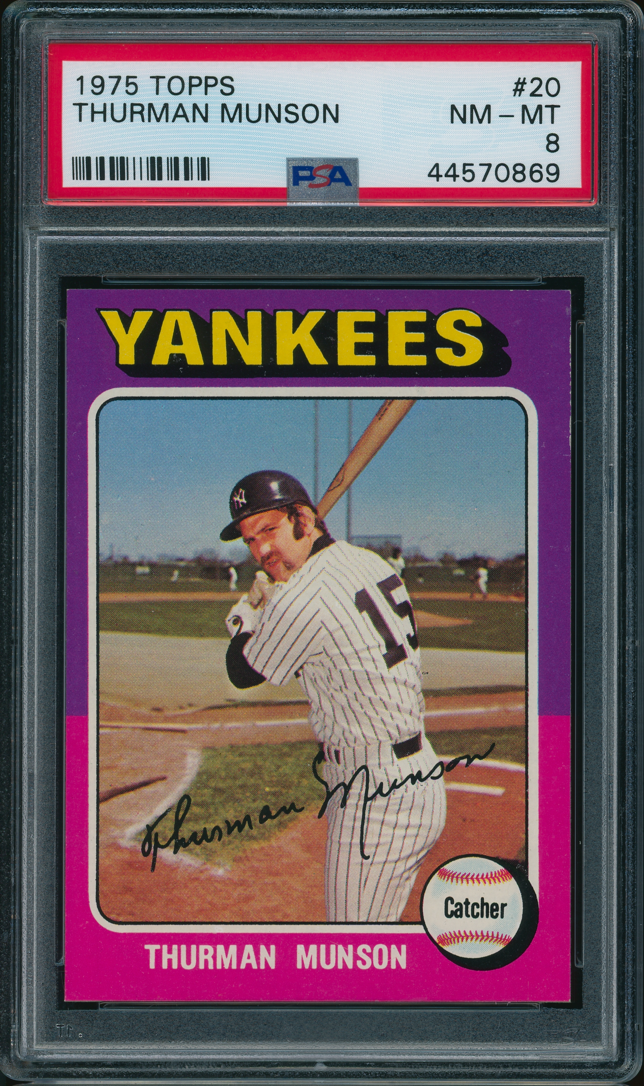 Home / Shop / Cards / Baseball / Yankees / 1975 Topps #20 Thurman Munson PSA 8 NM-MT1975 Topps #20 Thurman Munson PSA 8 NM-MTRelated products Baseball , Cards 1989 Bowman #211 Tino Martinez RC Yankees PSA 10 GEM MT Baseball , Cards 1983 Topps #163 Cal Ripken Jr. Orioles PSA 10 GEM MT Baseball , Cards 1977 Topps #640 Carlton Fisk Red Sox PSA 9 MINT Baseball , Cards 1984 Topps Traded #42T Dwight Gooden RC Rookie PSA 10 GEM MT
