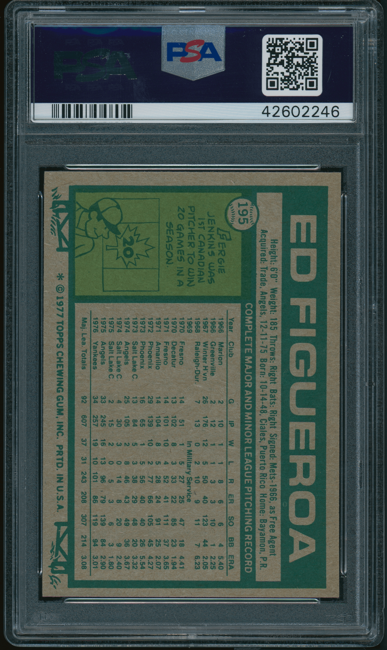Home / Shop / Cards / Baseball / Yankees / 1977 Topps #195 Ed Figueroa PSA 9 MINT1977 Topps #195 Ed Figueroa PSA 9 MINTRelated products Baseball , Cards 1958 Topps #370 Yogi Berra Yankees PSA 8++ Centered All-Star Cups , Baseball 2018 Topps Heritage #25 Aaron Judge PSA 10 Baseball , Cards 1983 Topps #580 Tom Seaver Reds PSA 10 GEM MT Baseball , Cards 2019 Topps Living #259 Thurman Munson Yankees PSA 10 GEM MT