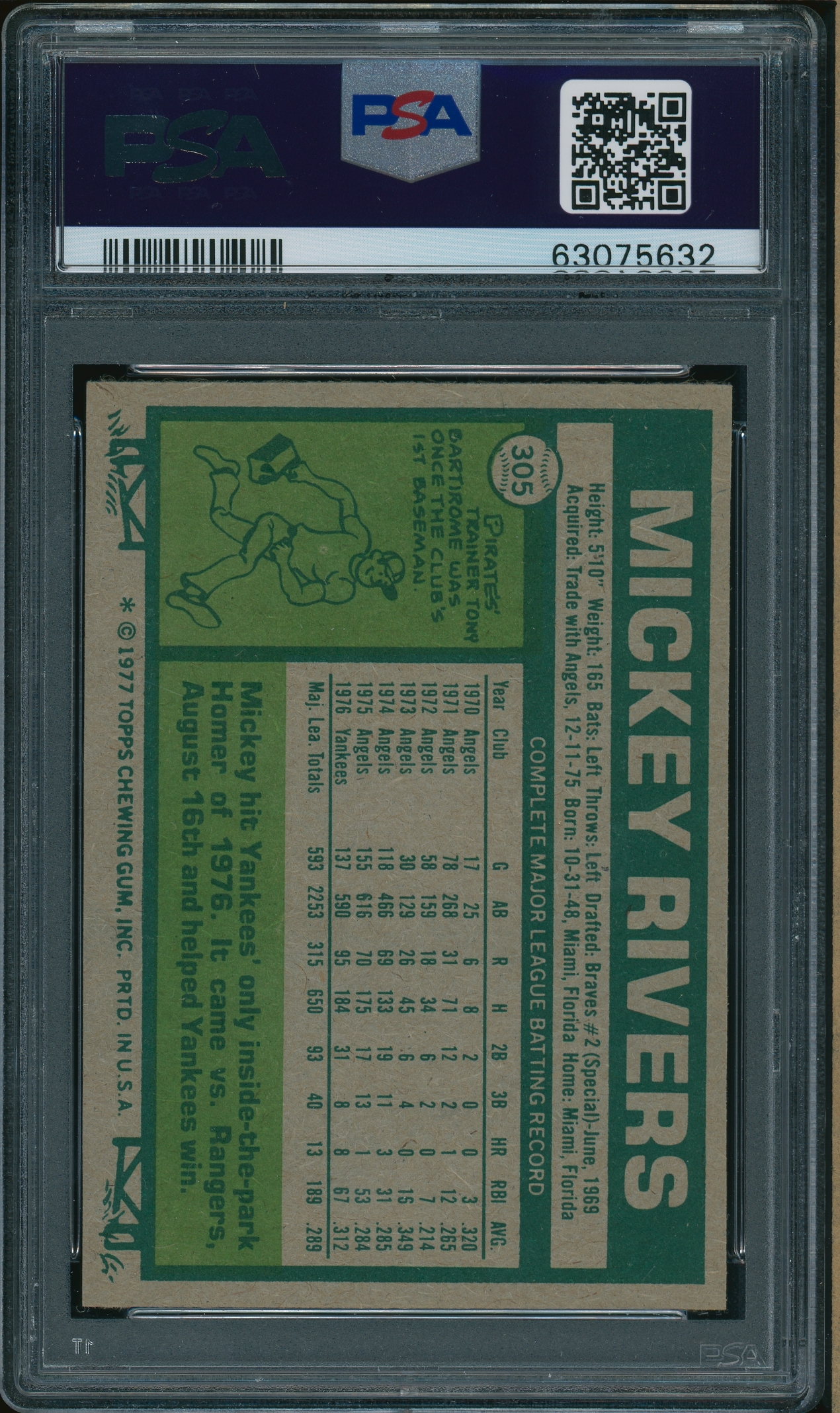 Home / Shop / Cards / Baseball / Yankees / 1977 Topps #305 Mickey Rivers PSA 9 MINT1977 Topps #305 Mickey Rivers PSA 9 MINTRelated products Athletics , Baseball 1974 Topps #290 Vida Blue Athletics PSA 9 MINT Baseball , Cards 1989 Bowman #211 Tino Martinez RC Yankees PSA 10 GEM MT Baseball , Cards 1977 Topps #640 Carlton Fisk Red Sox PSA 9 MINT Baseball , Cards 1980 Topps #600 Reggie Jackson Yankees PSA 9 MINT