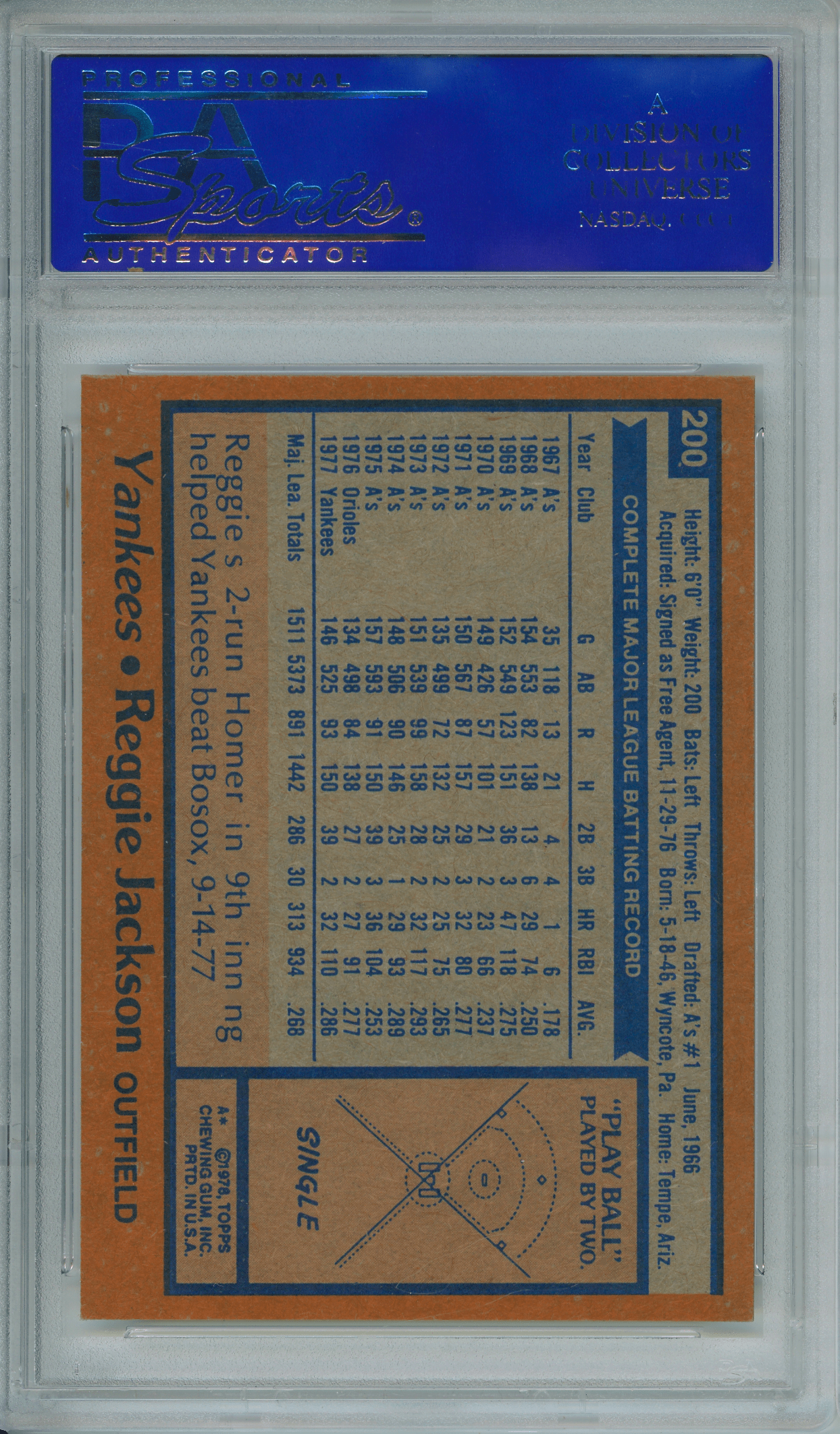 1978 Topps 200 #Reggie Jackson PSA 9 MINT