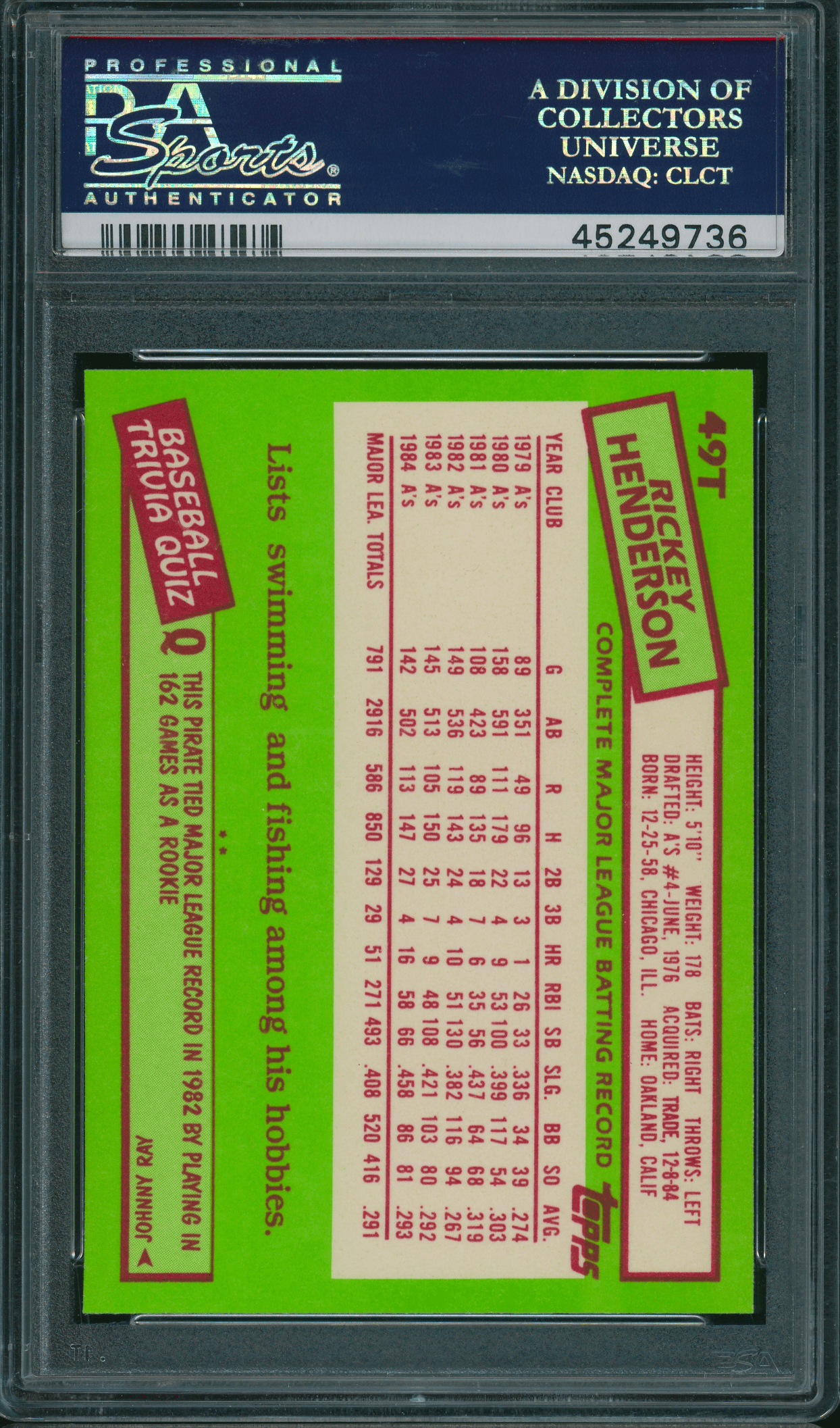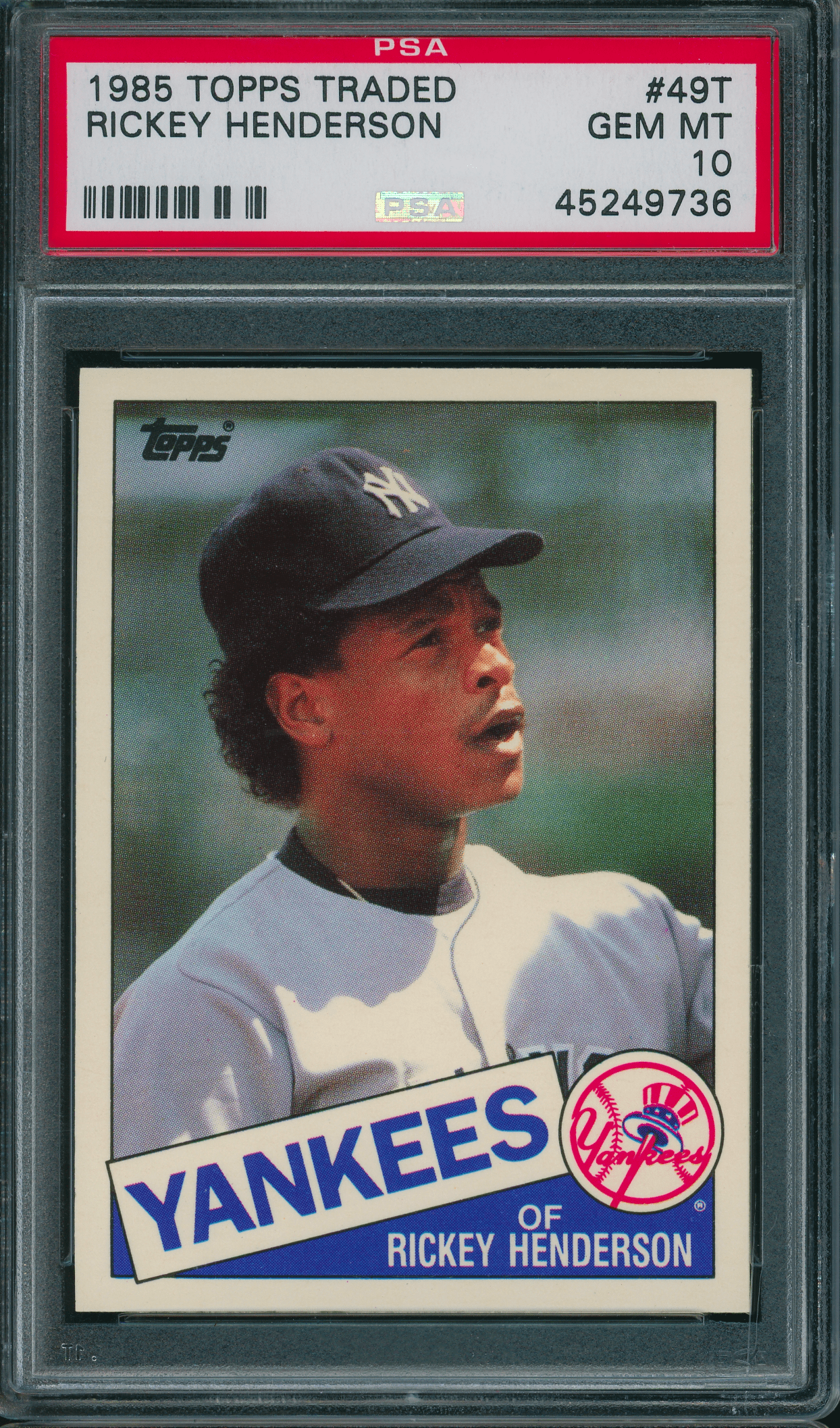 Home / Shop / Cards / Baseball / Yankees / 1985 Topps #49T Traded Rickey Henderson PSA 10 GEM MINT1985 Topps #49T Traded Rickey Henderson PSA 10 GEM MINTRelated products All-Star Cups , Baseball 2018 Topps Heritage #25 Aaron Judge PSA 10 All-Star Cups , Angels 2013 Topps Heritage #430 Mike Trout PSA 10 GEM MT All-Star Cups , Baseball 1968 Topps #45 Tom Seaver Mets PSA 8.5 Baseball , Cards 1986 Topps Tiffany #159 Orel Hershiser Dodgers PSA 9 MINT
