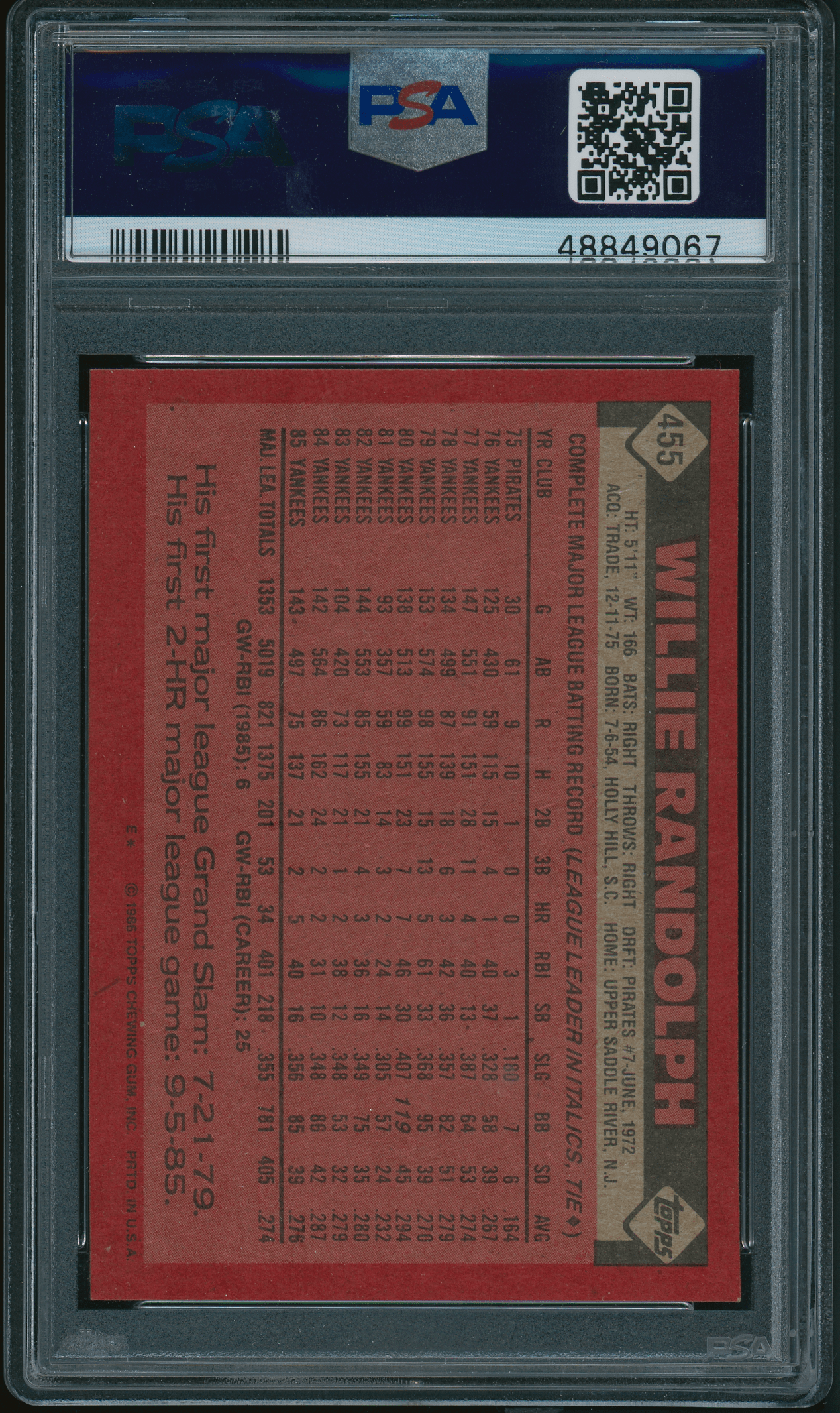 Home / Shop / Cards / Baseball / Yankees / 1986 Topps #455 Willie Randolph PSA 9 MINT1986 Topps #455 Willie Randolph PSA 9 MINTRelated products Baseball , Cards 1958 Topps #370 Yogi Berra Yankees PSA 8++ Centered Baseball , Cards 2019 Topps Living #259 Thurman Munson Yankees PSA 10 GEM MT Baseball , Cards 1986 Topps Tiffany #159 Orel Hershiser Dodgers PSA 9 MINT Baseball , Cards 1977 Topps #10 Reggie Jackson Yankees PSA 9 MINT