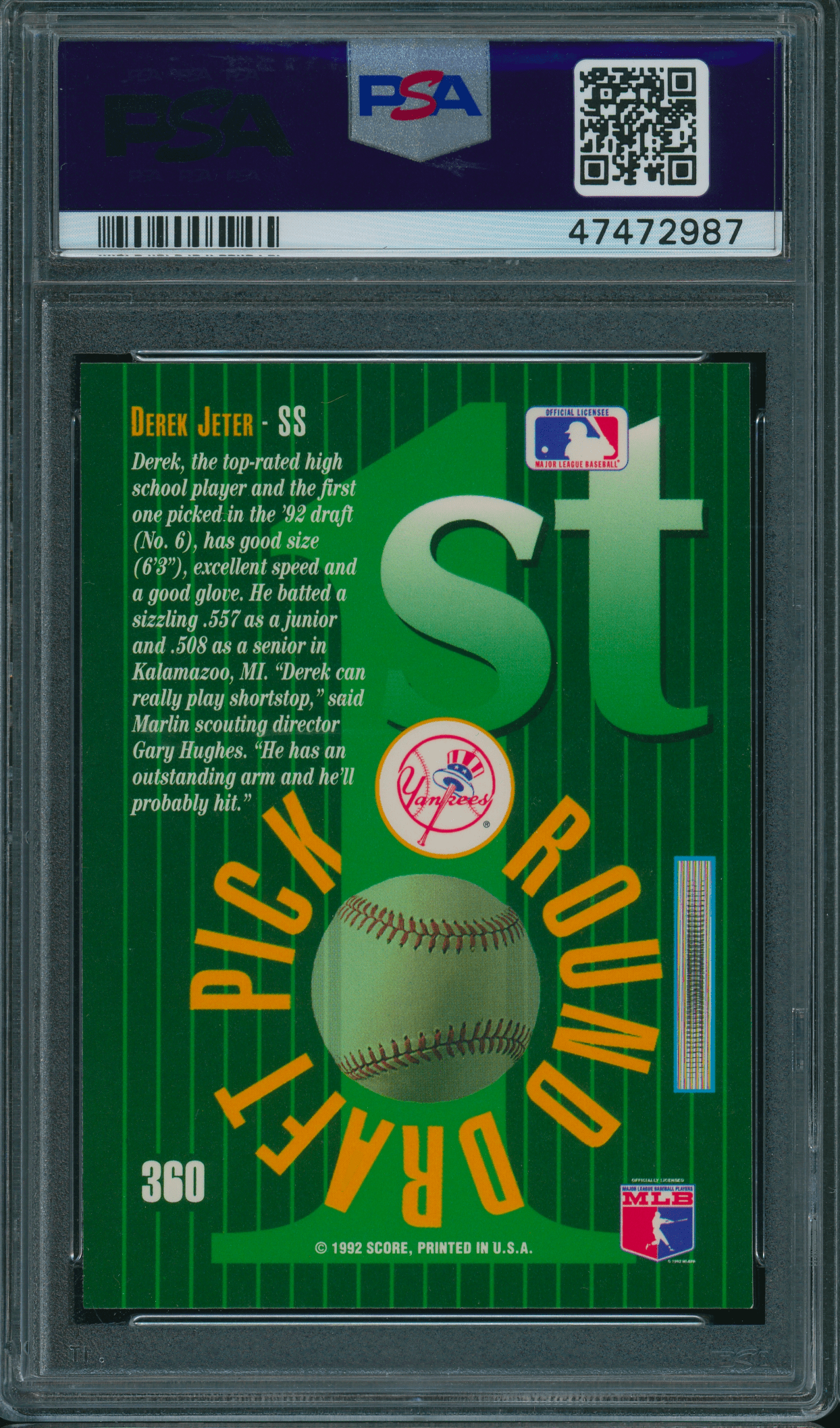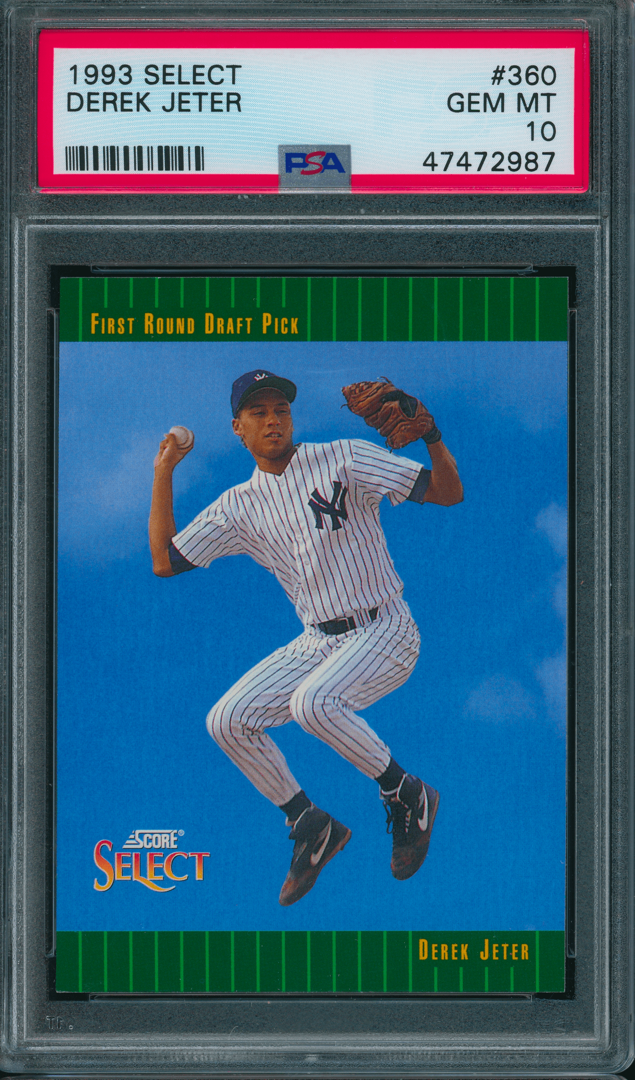 Home / Shop / Cards / Baseball / Rookie Cards / 1993 Select #360 Derek Jeter Rookie PSA 10 GEM MINT1993 Select #360 Derek Jeter Rookie PSA 10 GEM MINTRelated products Baseball , Cards 1973 Topps #627 Luis Alvarado White Sox PSA 8++ Centered Baseball , Cards 2019 Topps Living #259 Thurman Munson Yankees PSA 10 GEM MT All-Star Cups , Baseball 1968 Topps #45 Tom Seaver Mets PSA 8.5 Baseball , Cards 1958 Topps #370 Yogi Berra Yankees PSA 8++ Centered